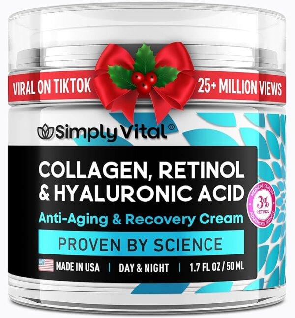 Indulge in the ultimate spa experience with their unique 12 handcrafted bath bombs, each designed to inspire relaxation and rejuvenation. Freshly made in California with top-tier, domestic natural ingredients, these luxurious bath bombs promise a soothing, therapeutic touch perfect for nourishing normal to dry skin. Expertly concocted by a team passionate about quality spa experiences, each bomb is individually wrapped ready to be gifted. The set is the go-to choice for thoughtful presents, making occasions like Mother’s Day, Father’s Day, birthdays, or any special moment unforgettable. Elevate your gesture of love and appreciation with the promise of a serene, delightful bath experience.SimplyVital Face Moisturizer Collagen Cream