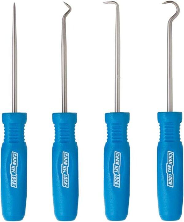 The ultimate coffee machine care with their efficient, gentle descaler—a necessity for enhancing flavor and longevity. Universally compatible, this eco-friendly solution works seamlessly with all single-use coffee and espresso machines, including Keurig, Nespresso, Delonghi, and beyond. The unique formula tackles limescale and mineral deposits and prevents corrosion, significantly extending your machine’s efficiency and service life. This descaler is crafted for all, whether for automatic, manual, commercial, or cappuccino machines. Made with pride in the USA, each pack provides two bottles, supporting four uses overall. Regular maintenance every 2-3 months is recommended for optimal results, ensuring a consistently exquisite coffee experience.CHANNELLOCK HP-4ECP 4pc Hook & Pick Set