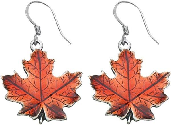 Crafted in the USA, this exquisite 14K yellow gold West Indian bangle is a testament to timeless elegance. With a substantial weight of 36 grams, this luxurious piece is notable for its intricate decorative patterns adorning the thick band, while the smooth, spear-like ends exude a sense of strength. The bangle is further enhanced by a delicate, coiled rim tracing its entire circumference, adding a subtle, captivating detail. At 7.5 inches, this distinguished piece makes a bold statement, embodying cultural richness and premium craftsmanship.DANFORTH - Maple Leaf Fall/Autumn Earrings