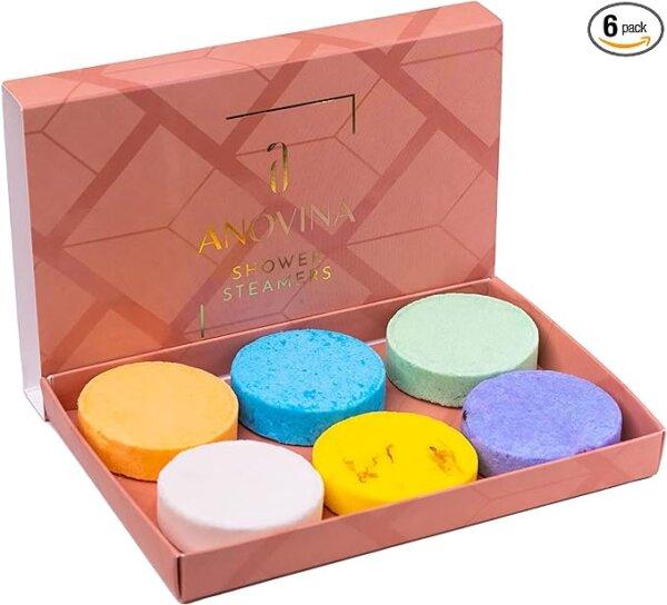Experience a revolution in nail care with their uniquely patented design that conveniently catches nail clippings and ensures easy disposal. Say goodbye to the swiveling handles of ordinary nail clippers. The method guarantees easy-to-hold control and precision ground-cutting edges for a flawless nail-trimming experience. As an added feature, the fingernail and toenail clippers come equipped with a built-in laser-cut nail file. This embodiment of American ingenuity isn’t just functional but also a distinctive gift. Backed by an unconditional lifetime guarantee, the product is 100% made in USA.Anovina 6XL Shower Steamers Gift Box